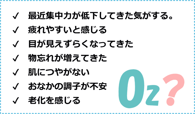 はっきりした自覚症状がないまでも「疲れやすくなったなぁ」とか「歳を感じるようになってきた」など、漠然とした変化を感じるならば、もしかすると酸素をカラダに取り込む力が低下している可能性があります。