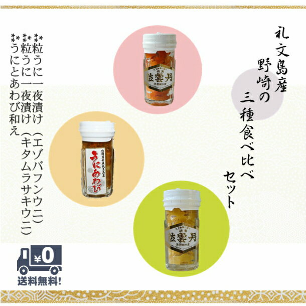 礼文島 粒うに一夜漬け3種味比べセット 【送料無料】塩雲丹 塩うに エゾバフンウニとキタムラサキウニの味比べとうにとあわび和えセット 礼文島で水揚げされ、当店人気商品を全てセットにしました。