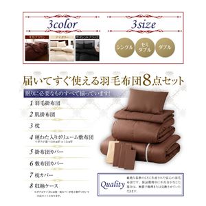 ・大型商品の複数購入時・北海道、沖縄、離島および一部地域への配送時【出荷目安】:即日 - 1 ※土日・祝除く:大型商品【商品の色やサイズについて】こちらは「布団8点セット ダブル【フェリシア】サイレントブラック 日本製防カビ消臭 フランス産ホワイトダックダウンエクセルゴールドラベル羽毛布団8点セットFelicia【フェリシア】硬綿入りボリューム」の商品ページです。