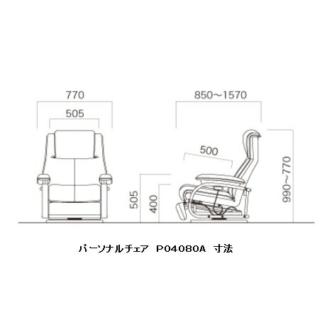 商品説明サイズパーソナルチェアP04080AW770mm×D850〜1570mm×H990〜770mm(SH400mm)材質木部:オーク材成形合板塗装:オープン塗装仕上げ(6色対応)クッション:ウェーブスプリング・ウレタンフォーム張地:革/合皮・ソフトレザー色木部:6色対応ソフトレザー9色対応・半皮8色対応商品説明 ■スライドフットレストメカ機能付きのリクライナーです。