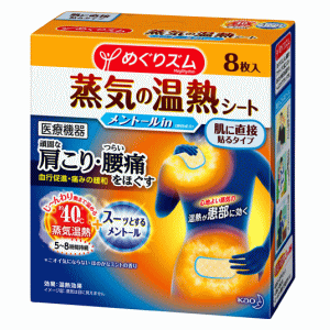 花王 めぐりズム 蒸気の温熱シート 肌に直接貼るタイプ メントールイン 8枚入 【一般医療機器】'※パッケージリニューアルに伴い画像と異なるパッケージの場合がございます。ご了承下さいませ。