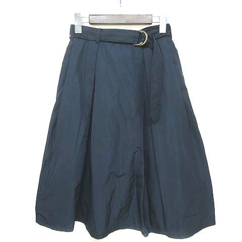 【中古】ブロードゥリー&コー Broderie&Co ナノユニバース スカート サテン ミモレ フレア ベルト付 イージー ネイビー F レディース 【ベクトル 古着】 200915 ベクトルプレミアム店