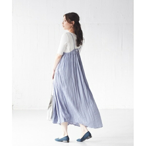 イッツデモのサテンプリーツキャミワンピース【デザイン】ランダムなプリーツでニュアンスある表情に仕上げたキャミワンピ。
