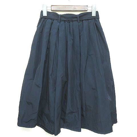 【中古】ブロードゥリー&コー Broderie&Co ナノユニバース スカート サテン ミモレ フレア ベルト付 イージー ネイビー F レディース 【ベクトル 古着】 200915 ベクトルプレミアム店