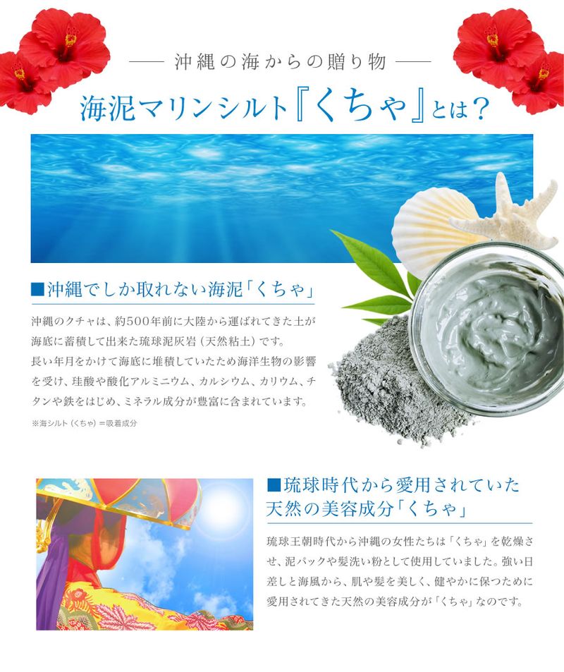 海洋性ミネラル豊富な「くちゃ(※1)」やハイビスカス、アロエ、月桃など、保湿成分が乾燥しがちな肌の潤いを守ります。