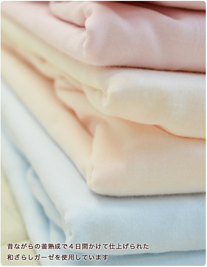 昔ながらの和晒しガーゼは、綿素材が持つ本来の風合いを最大限にいかしながら 高い吸湿性・通気性・保温性を実現したナチュラル素材です。