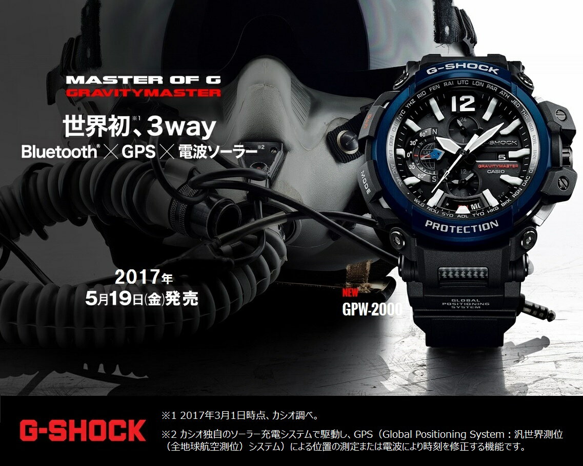 メーカー希望小売価格はメーカー商品タグに基づいて掲載していますBluetooth®搭載 GPSハイブリッド電波ソーラーウォッチCASIO G-SHOCK グラビティマスター GPW-2000-1A2JF 絶対精度とあくなきタフネスを追求し、独創のテクノロジーで進化を続けてきた[G-SHOCK]から、カシオが先進の高密度実装技術と省電力技術の粋を集めた新機能、そして新たな[TRIPLE G RESIST]構造を開発・搭載し、更に樹脂成形によるリング形状の立体時字、カーボンファイバー製の秒針、キズがつきにくく視認性の高いサファイアガラスの風防、引っ張りや摩耗に対して非常に強いカーボンファイバーインサートバンドなど、徹底的にタフにこだわった品質も備えて、あくなきタフネスの追求と、時計に新たな価値を創造するためのテクノロジーが融合することで、絶対精度と究極のタフネスという目標を具現化させた新生[グラビティマスター]の登場です!! GPS衛星電波と標準電波受信機能による時刻修正機能に加え、Bluetooth®によるモバイルリンク機能を搭載し、時刻修正を行うためのもう一つのスペックを身に付けました。