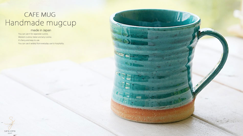 和食器 松助窯 カフェマグカップ 織部グリーンブルーオフィス コーヒー おしゃれ 紅茶 器 皿 美濃焼 陶器 食器 手づくり