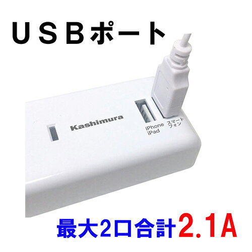 カシムラ NTI-175(ホワイト) 電源タップ 国内・海外兼用 4口電源タップ Aタイプ 2USB 2.1A 1m 4個口