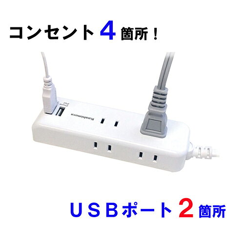 カシムラ NTI-175(ホワイト) 電源タップ 国内・海外兼用 4口電源タップ Aタイプ 2USB 2.1A 1m 4個口