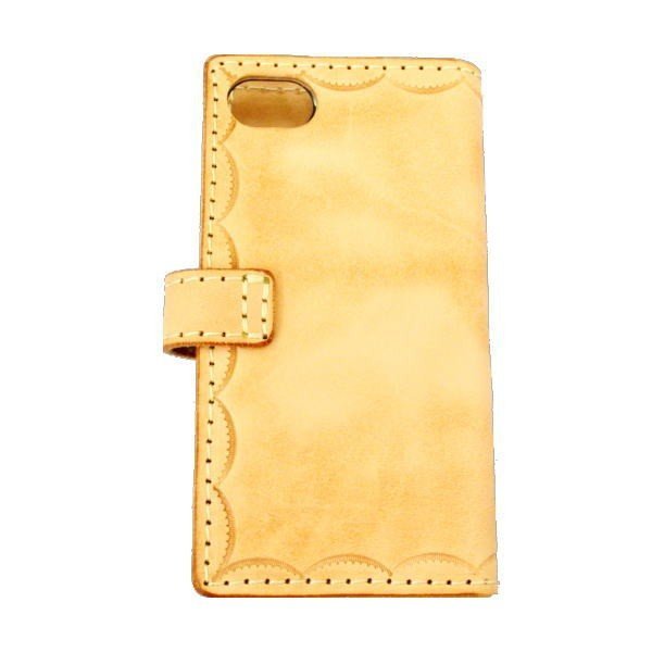 スマホケース 手帳型 i-phone7 アイフォン7 レザーカバー ブックタイプ 山型 スタンピング レザークラフト ハンドクラフト 革 牛革 本革 栃木レザー ヌメ革 日本製 使い込むほどにあめ色へと変化します! 上質のヌメ革の表面を研磨して焦がしてあります。