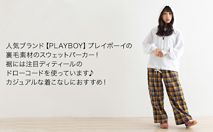 人気ブランド【PLAYBOY】プレイボーイの裏毛素材のスウェットパーカー! 裾には注目ディティールのドローコードを使っています♪
