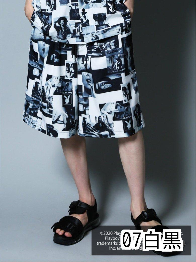 ポリエステル97% ポリウレタン3%MLウエスト8185股上34.535股下25.526渡り巾3637裾口巾34.535プレイボーイ/PLAYBOY別注ストレッチ総柄ショーツ世界的に有名なラビットヘッドやカバーガールのグラフィックに、semantic design らしいモードテイストをMIX。