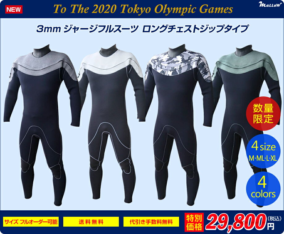 初売りSALE 祝2021年 予約販売 日本製サーフィンウェットスーツ3mmジャーフル ロングチェストZIP 数量限定 送料無料 サーフィン フルオーダー可能