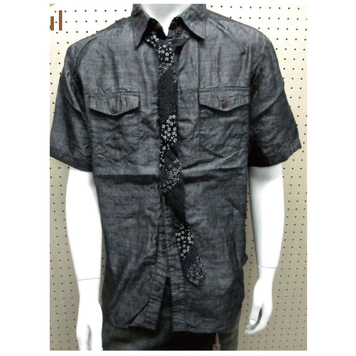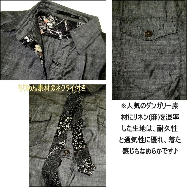 【セール】メンズ 半袖シャツ 半袖 麻 リネン 和柄 和柄シャツ ちりめん ネクタイ付き 無地 SOUL-ソウル / 16812310