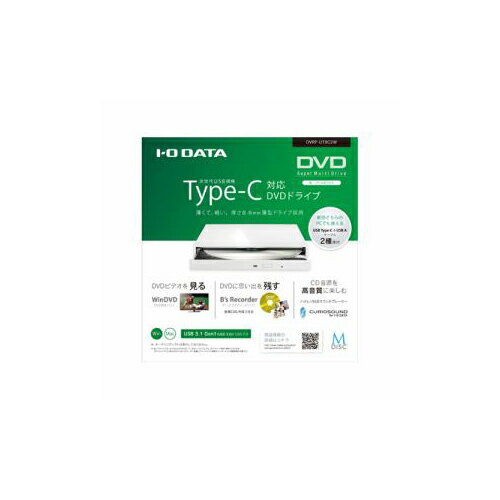 IOデータ DVRP-UT8C2W USB 3.0/2.0対応 バスパワー駆動ポータブルDVDドライブ パールホワイトIOデータ DVRP-UT8C2W USB 3.0/2.0対応 バスパワー駆動ポータブルDVDドライブ パールホワイト ?新・旧どちらのパソコンでも使えるケーブル2本付きモデル本商品は、USB Type-Cコネクターに対応。