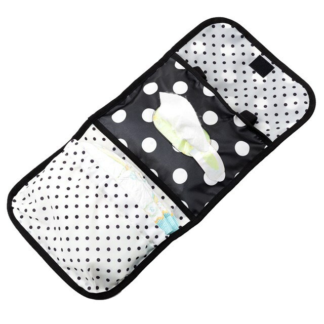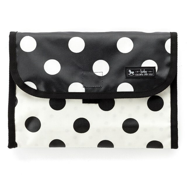 商品名おむつポーチ クラッチタイプ polka dot large(broadcloth・black)商品の特長1.おむつ交換に必要なアイテムをひとまとめSサイズのおむつ4〜5枚と、70枚程度のおしりふきなどおむつ交換に必要なアイテムをコンパクトに収納。
