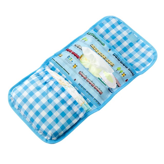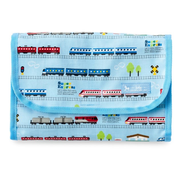 商品名おむつポーチ クラッチタイプ 超特急ドリームエクスプレス(ライトブルー)商品の特長1.おむつ交換に必要なアイテムをひとまとめSサイズのおむつ4〜5枚と、70枚程度のおしりふきなどおむつ交換に必要なアイテムをコンパクトに収納。