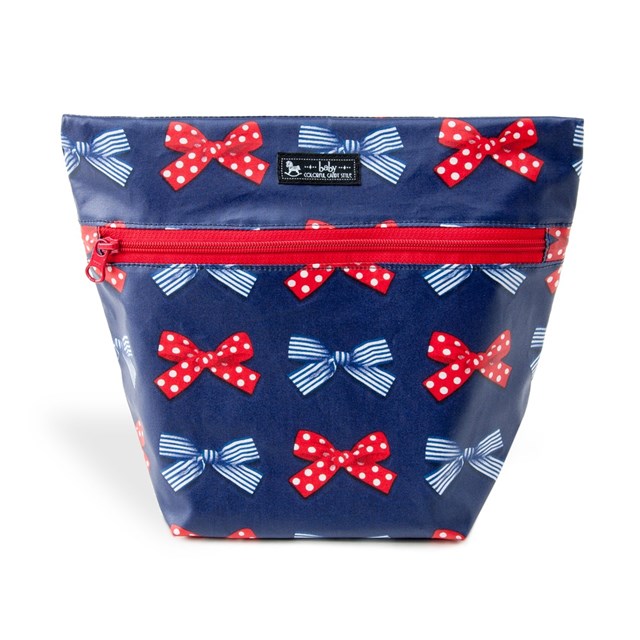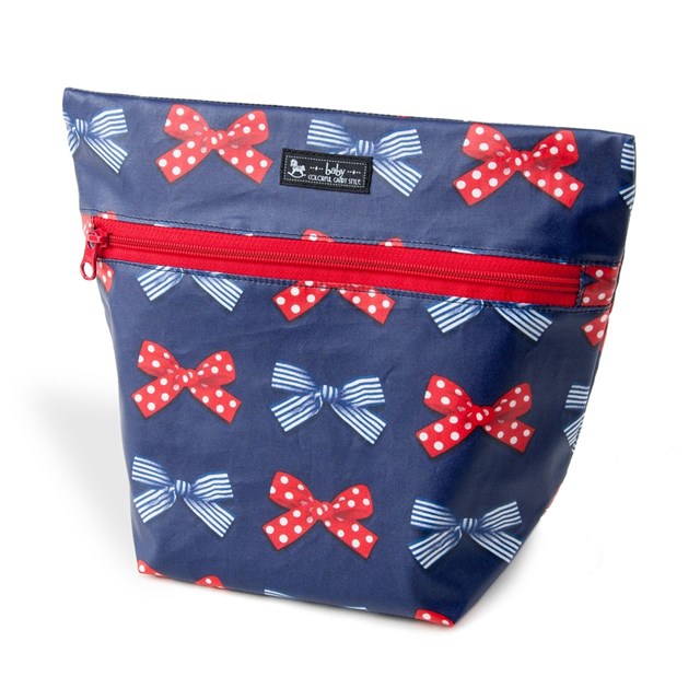 商品名消臭おむつポーチ ファスナータイプ ポルカドットとストライプのフレンチリボン(ネイビー)商品の特長1.使用済みおむつを持ち帰られる消臭ポーチ外出先で、使用済みのおむつを捨てられない時に活躍する消臭ポーチ。