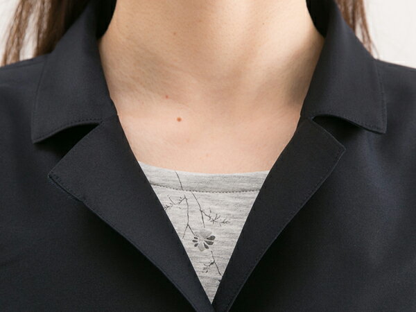 オープンシャツカラー 一番上のボタンをはずすとテーラーカラーのように。