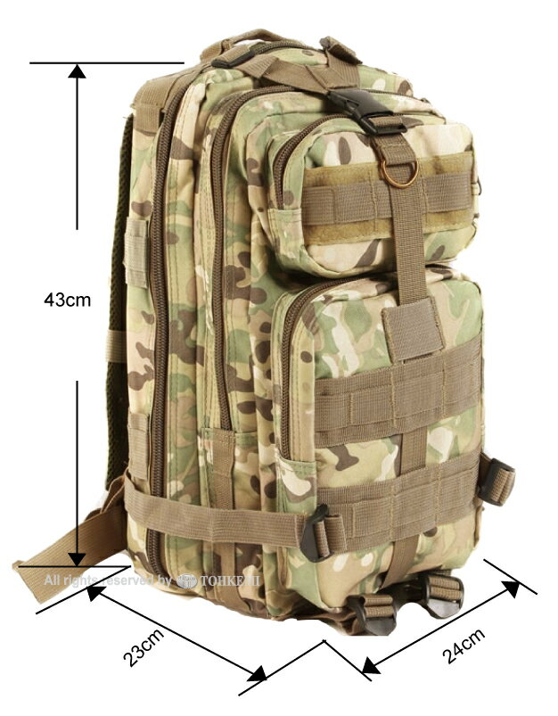 スリムタイプなので、女性やキッズにも扱いやすい!【機能】ショルダーベルト背面&ショルダークッションパネル(メッシュ付)ウェストベルトメインポケット×2(インナーポケット×3)前面ポケット×2(インナーポケット×1)ブランドロゴ入り【カラー】CP迷彩【サイズ】高さ:約43cm幅:約24cm奥行き:約23cm重さ:約870g